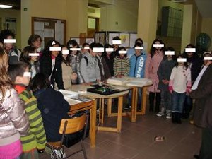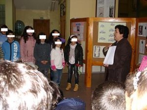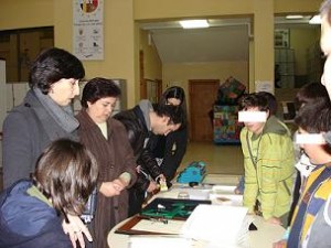 A nossa turma, 6.º B, foi ver uma exposição de cartazes e material específico utilizado com os alunos cegos.