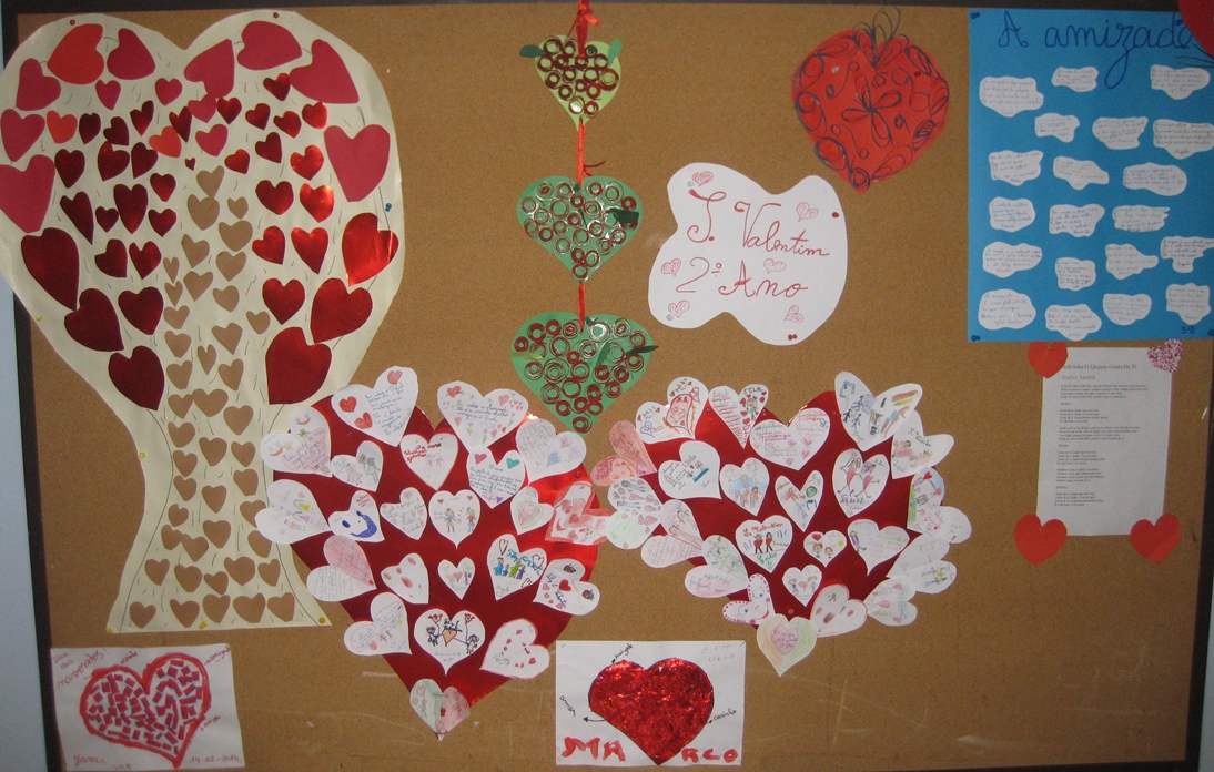 Para comemorar esta data tão especial, que associamos também à verdadeira Amizade, os alunos do Centro Escolar, desde os mais pequeninos da Educação Pré-escolar, os do 1º Ciclo e também os da Unidade de Apoio à Multideficiência, juntamente com os seus professores, trataram de a viver intensamente, através da elaboração de trabalhos que quiseram partilhar com todos. Vejamos as fotos aqui publicadas.