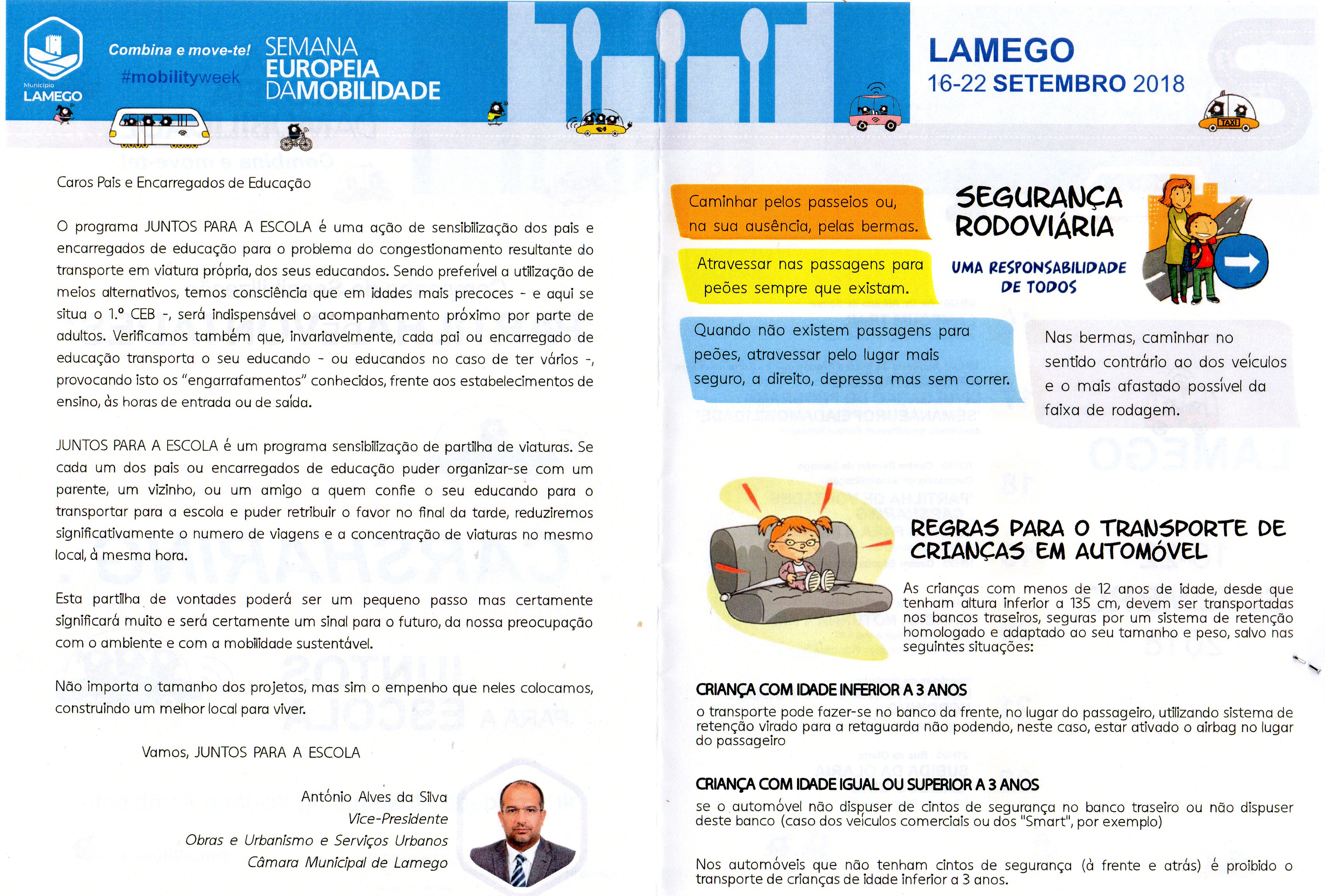 No passado dia 19 de setembro de 2018, os alunos e professores do 1º ciclo do Centro Escolar de Lamego nº2 puderam assistir a uma campanha de sensibilização intitulada “Partilha de Vontades”, integrada na Semana Europeia da Mobilidade (16 a 22 de setembro de 2018).