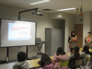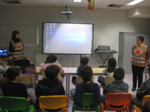Durante a semana de 12 a 16 de novembro, pudemos contar sempre com, pelo menos, dois voluntários que, partindo da apresentação do filme “HelpMan”, foram interagindo com os nossos alunos, dando-lhes a conhecer os objetivos, as várias atividades que são desenvolvidas e os sete princípios fundamentais que garantem a coesão do Movimento Internacional da Cruz Vermelha e do Crescente Vermelho.