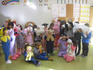 Neste dia, as crianças trouxeram os seus donativos e vieram de pijama, simbolizando o aconchego, a ternura dos momentos em Família e a importância desta para a construção da IDENTIDADE e do EU como elemento de uma comunidade.