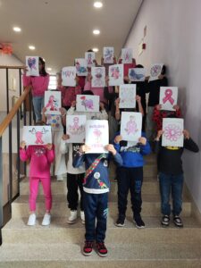 Após este trabalho, foram elaborados diversos trabalhos e colocou-se um laço rosa no pulso de cada uma das crianças e professores, com o objetivo de reforçar a sensibilização sobre a importância da prevenção e do diagnóstico precoce da doença. Porque PREVENIR é uma das melhores formas de LUTAR!