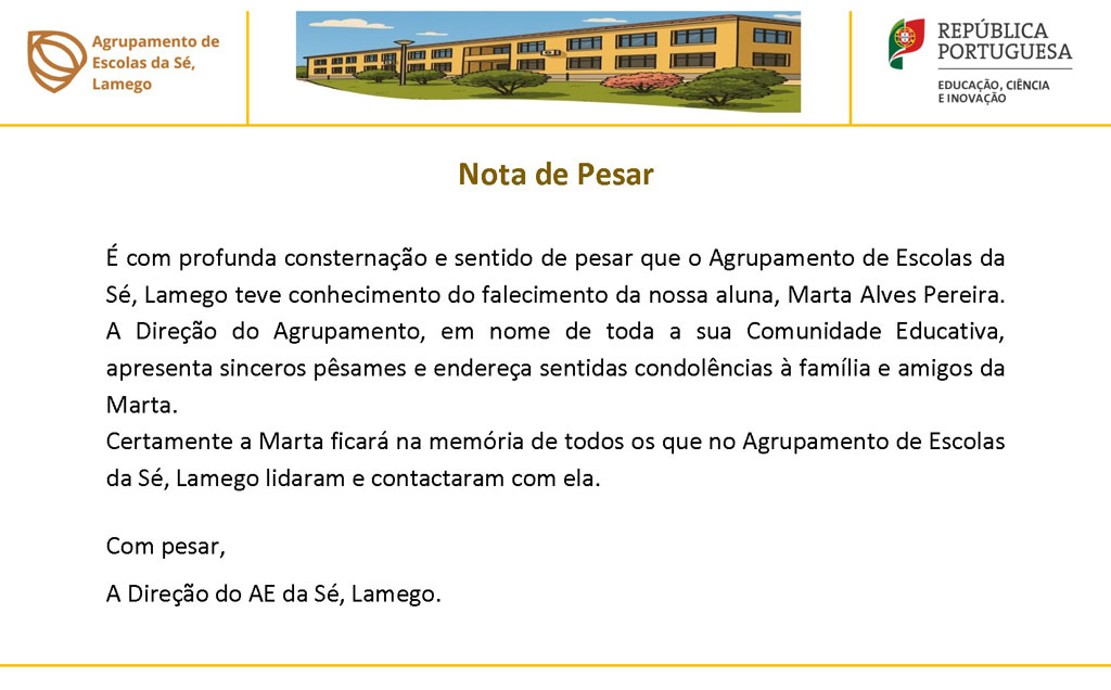 Nota de Pesar - falecimento da aluna Marta Alves Pereira