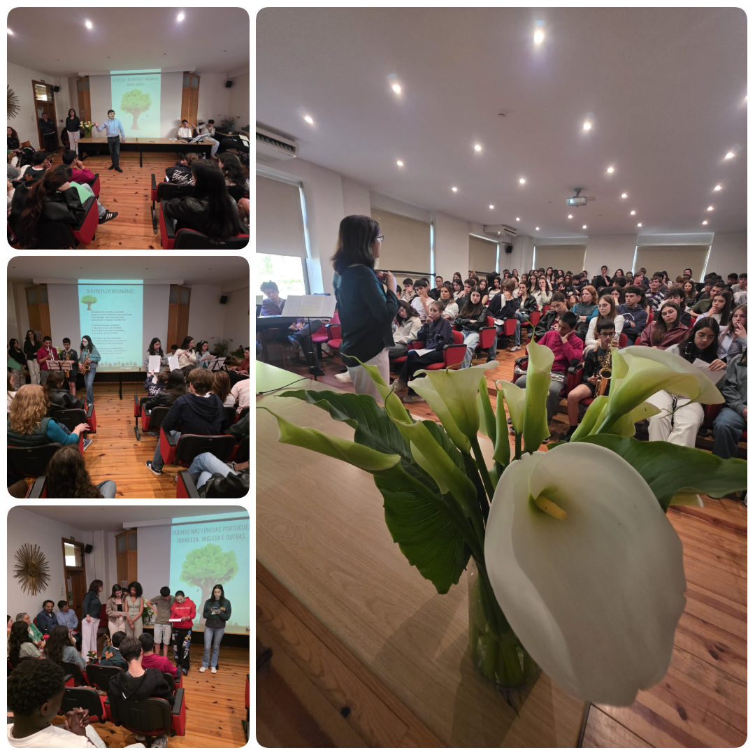 A atividade foi preparada e concretizada com e pela “prata da casa”. Desde a antiga aluna, Magda Santos, que deixou o testemunho da sua relação com a poesia; ao pequeno Tiago Moura, do 5ºA, que declamou o poema inicial; aos músicos e cantores, Margarida Fonseca, do 5ºA, Dinis Ribeiro, do 7ºB, Adriana Amaro, do 7ºD, Rodrigo Portela, do 9ºC, Ana Pombinho, Cláudia Mendes e Matilde Gomes, do 10ºA, Eva Ribeiro e Francisca Ribeiro, do 10ºB, Luana Bernardo, do 10ºC e Luís Seco, do 11ºA; aos assistentes técnicos David Silva, Luca Santos e Patrick Silva, do 11ºC; aos alunos das várias turmas que leram poemas nas línguas portuguesa, francesa, inglesa, alemã e italiana; às assistentes operacionais Rosa Faustino e Isabel Martins que embelezaram o